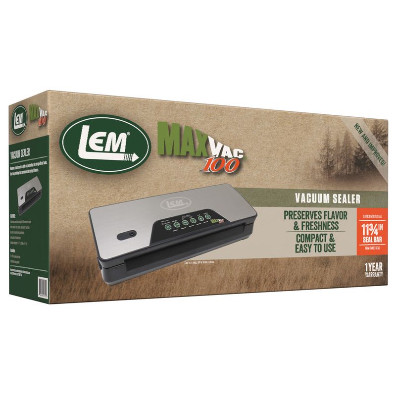 The LEM MaxVac 100 Vacuum Sealer is a high-quality, compact vacuum sealer for those who don't need the industrial output of a larger machine. Powerful and Easy-to-Use with the powerful pump and 12" seal bar that will extract the air, seal it tight and extend the freshness and freezer life of your favorite foods. The compact footprint of 14 -1/2"L x 6"W is small enough to store in a drawer. The LEM MaxVac allows for up to 26 consecutive seals without stopping or cooling down.